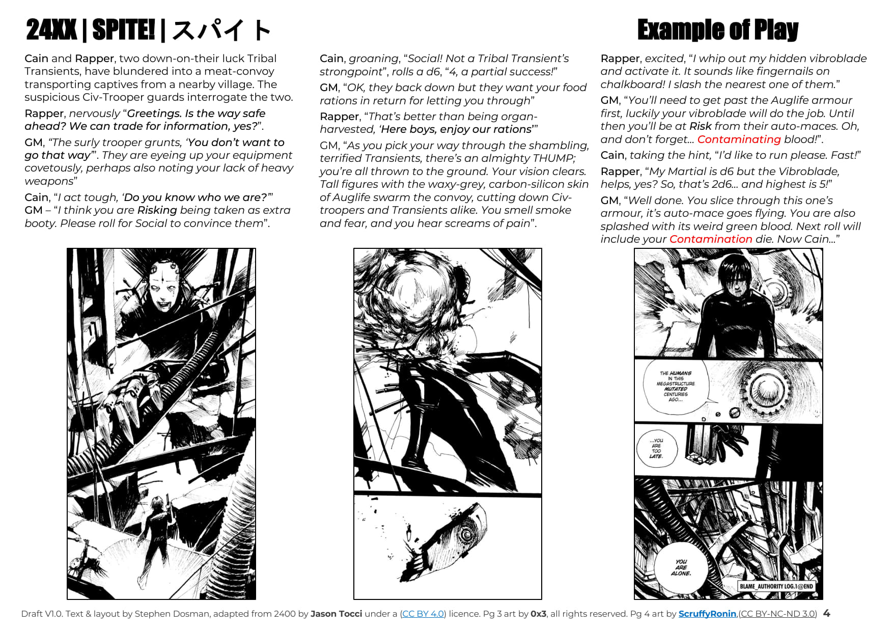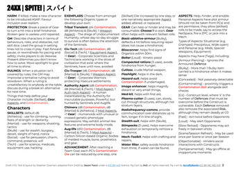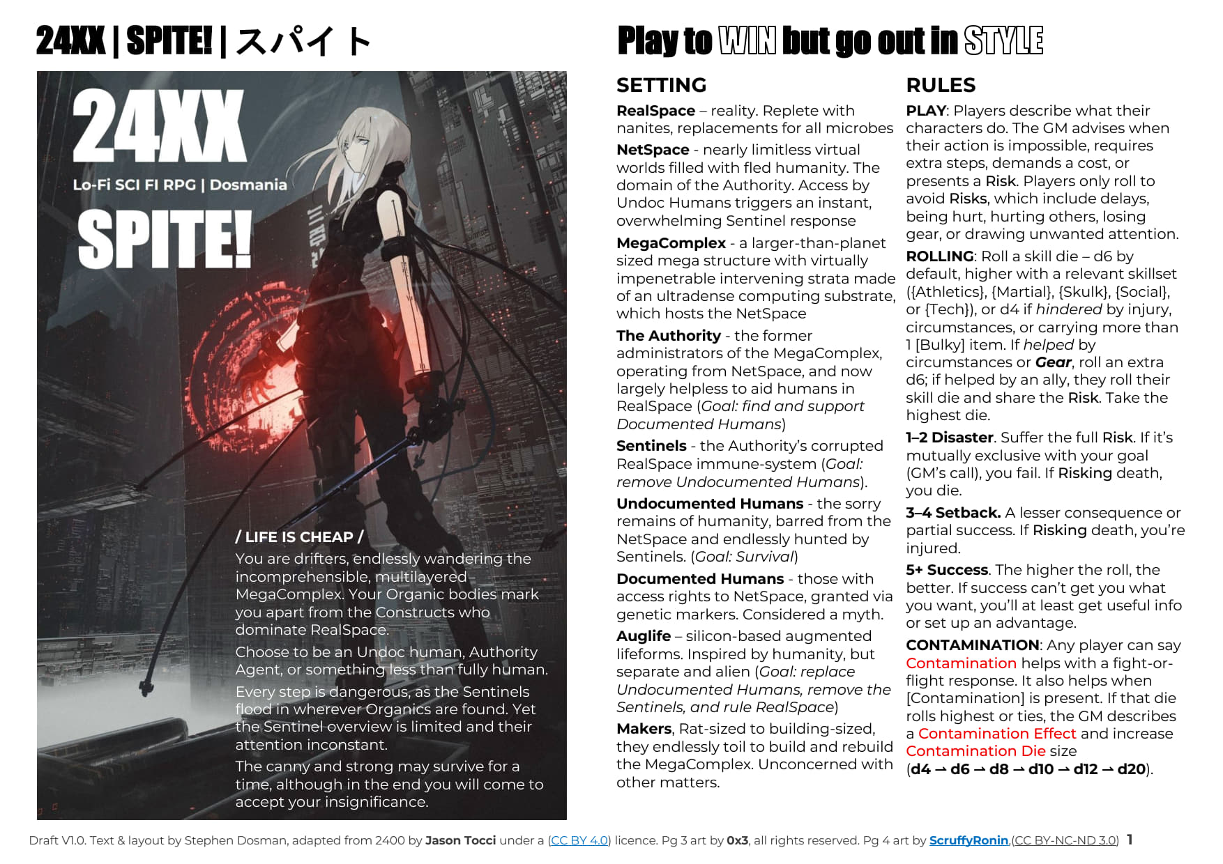 SPITE! is a 24XX Lo-Fi SCI FI RPG for those who are inspired by Tsutomu Nihei's Blame! Manga and Anime and wish to play in a similar feeling universe. It includes the scenario Laughing, Dreaming Vertebrates.