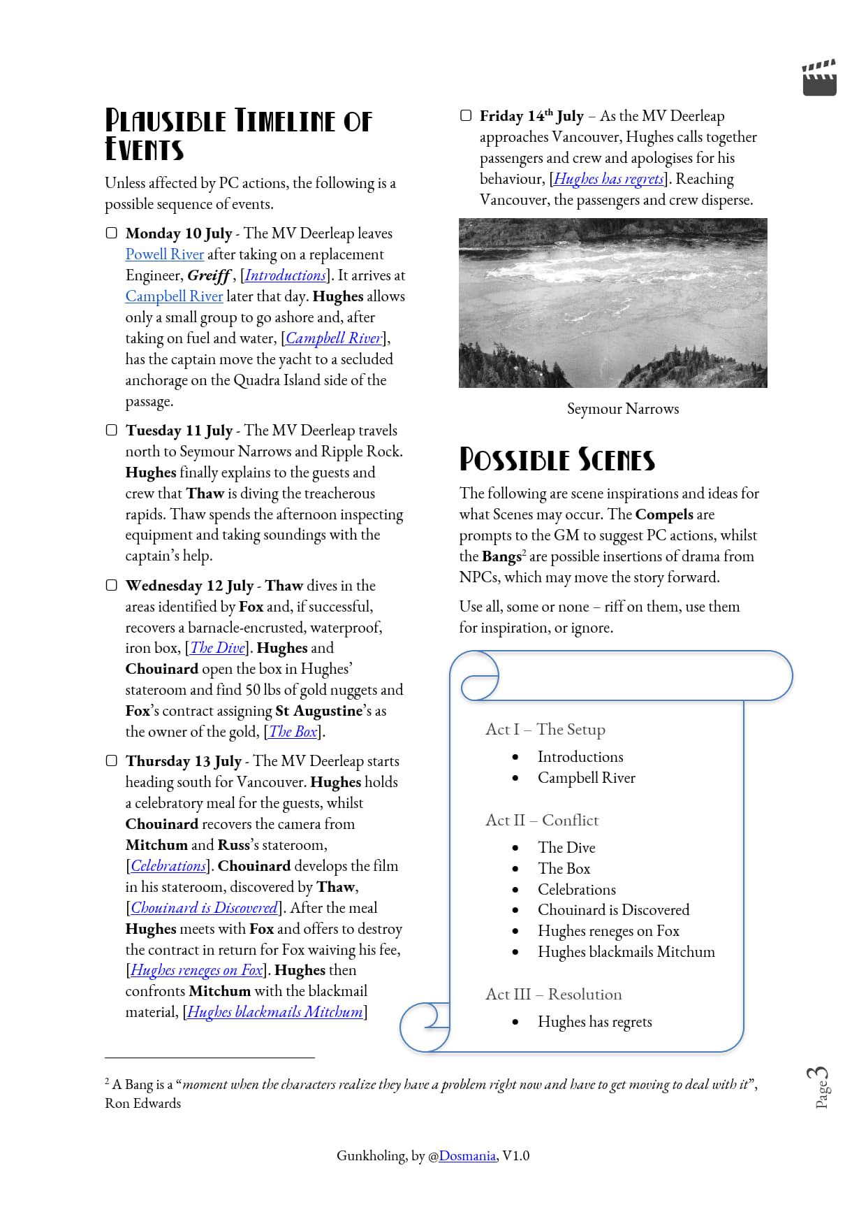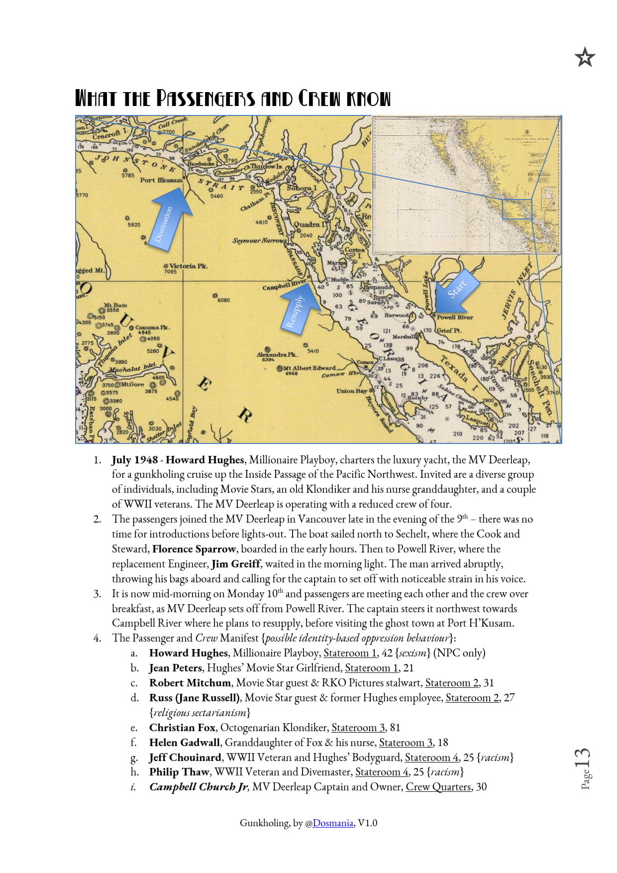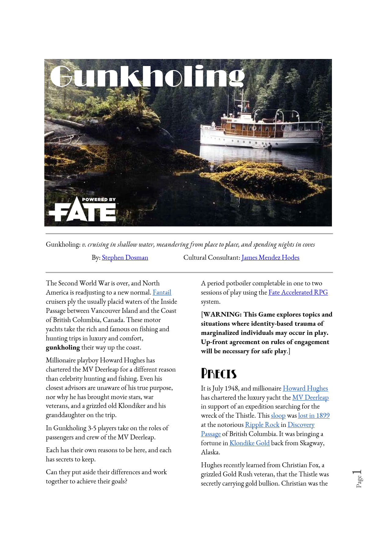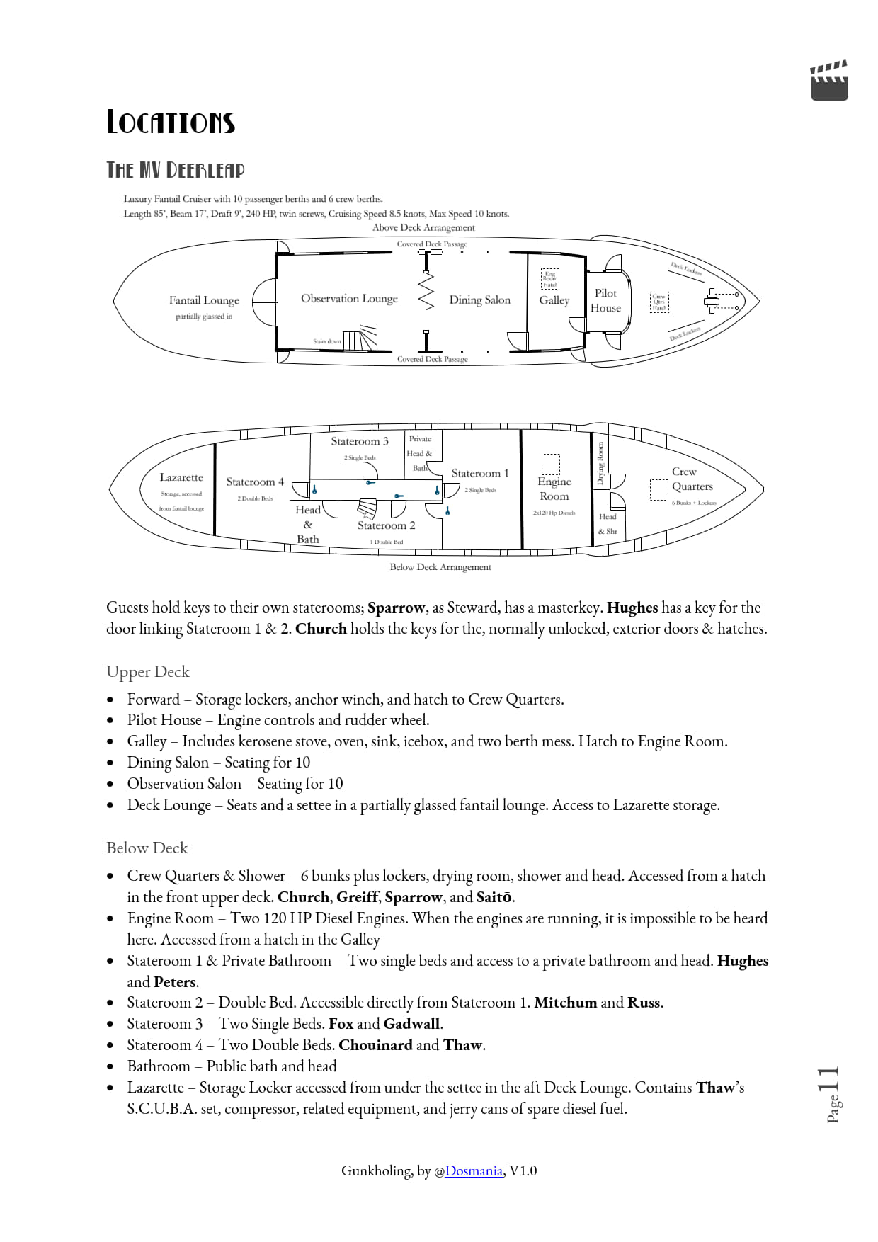 In Gunkholing 3-5 players take on the roles of passengers and crew of the MV Deerleap.